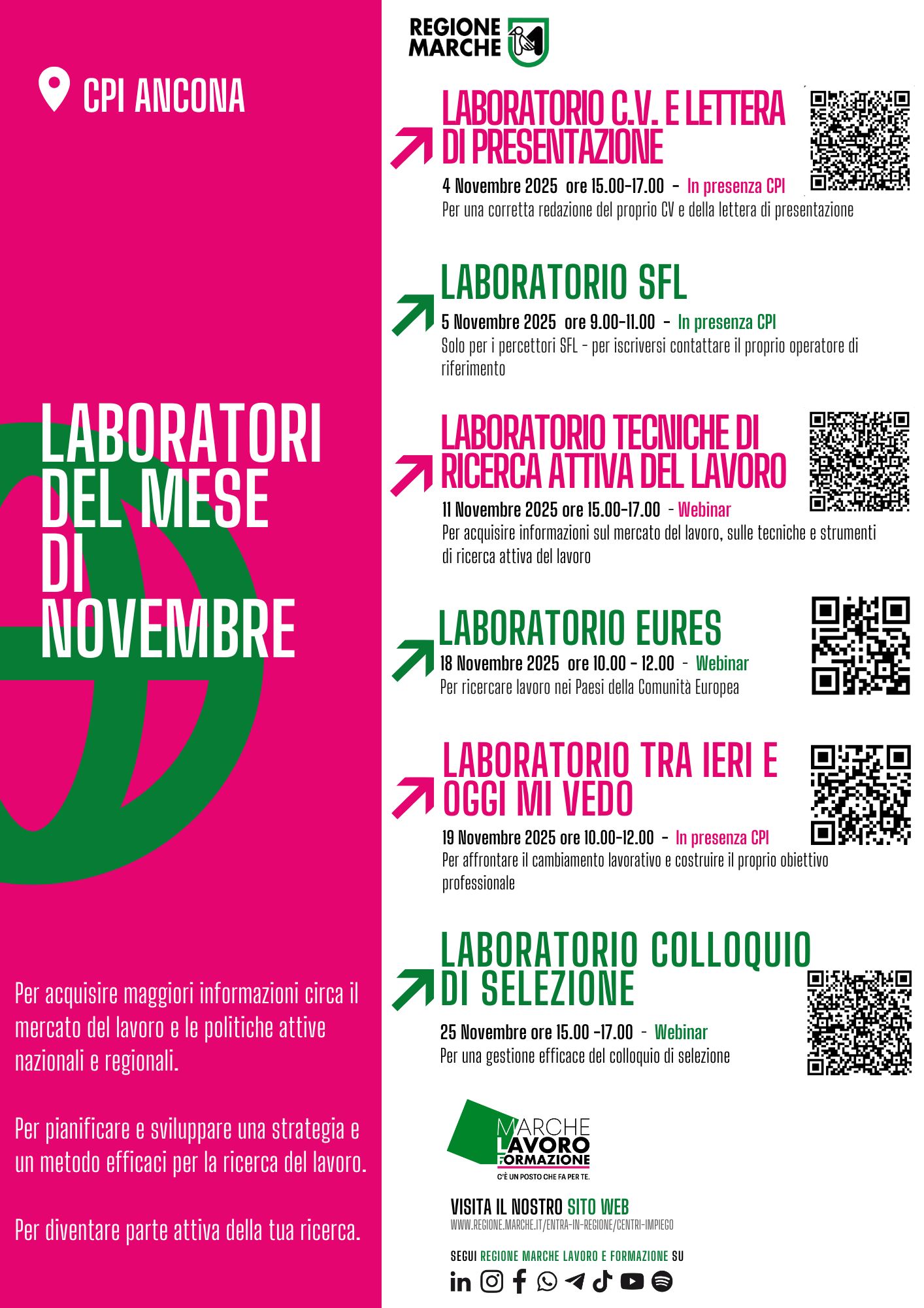 QUANDO: MERCOLEDì 19/11 ORE 10.00-12.00 IN PRESENZA C/O CPI DI ANCONA