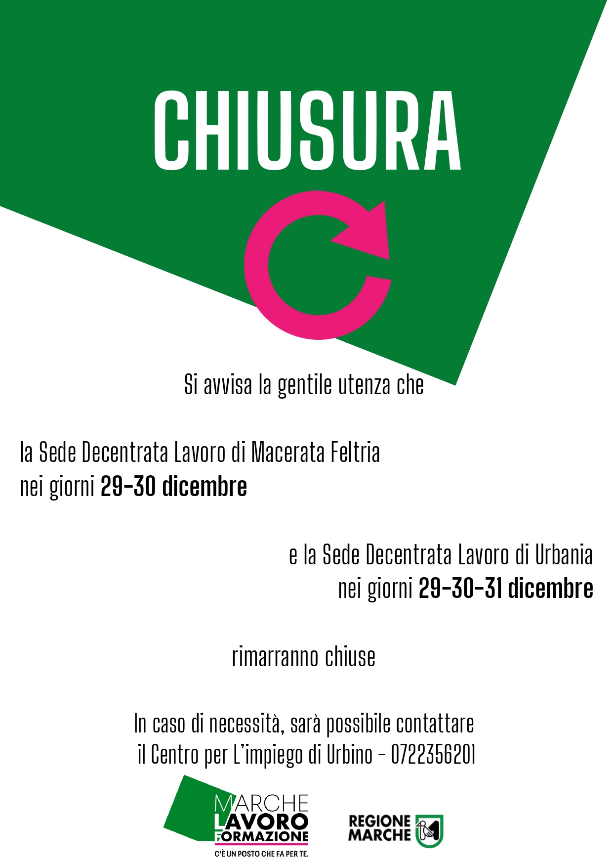 lunedì 1 dicembre 2025 01:25 CHIUSURE NEL MESE DI DICEMBRE 2025 - SEDE DECENTRATA DI MACERATA FELTRIA E URBANIA Urbino 0 views 0 comments Go Back Tags:
