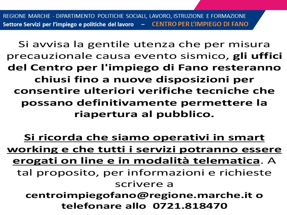 CHIUSURA UFFICI CENTRO IMPIEGO FANO