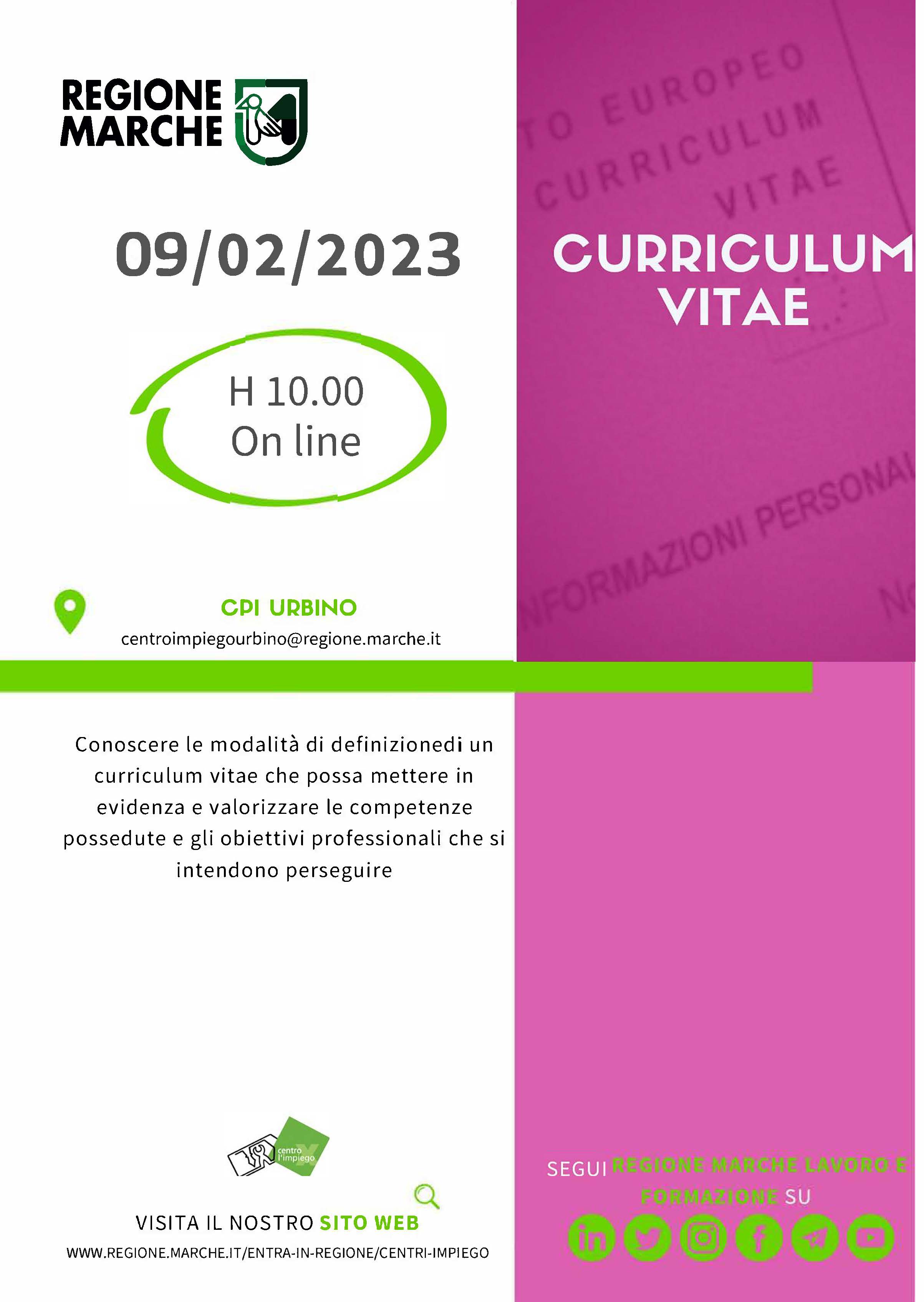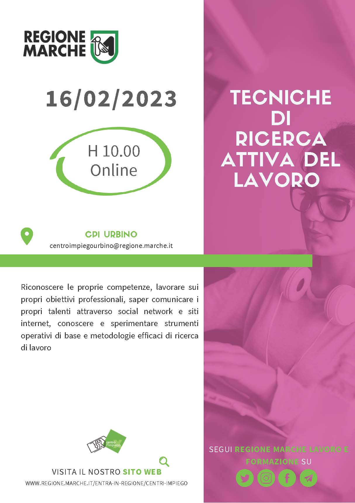 Il Centro per l'Impiego di Urbino prosegue con il ciclo di appuntamenti dedicati a favorire l’acquisizione di competenze e strumenti concreti per affrontare in modo attivo e consapevole la ricerca del lavoro, ottenere informazioni sulle opportunità formative esistenti ed essere orientati su percorsi utili a migliorare il proprio profilo di occupabilità.
