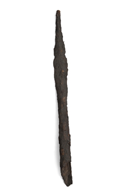 frammento di lancia a sezione piatta o lenticolare molto allungata con collo sottile e gorbia troncoconica