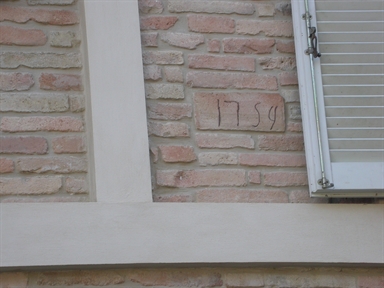 intero bene, La costruzione dell'edificio risale alla meta' del sec. XVII. Un mattone inciso nel prospetto principale riporta la data 1655, un altro mattone inciso riporta la data 1754 riferibile forse all'opera di restauro.