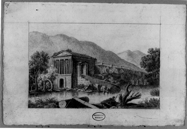 paesaggio fluviale con edificio sacro