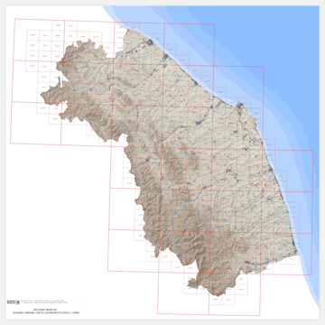 L’area interessata riguarda il territorio regionale compreso all’interno dei seguenti fogli: 266 “Mercato Saraceno”, 267 “San Marino”, 268 “Pesaro”p.p., 278 “Pieve S. Stefano” p.p., 280 “Fossombrone” p.p., 281 “Senigallia” p.p., 289 “Città di Castello”, 290 “Cagli”, 291 “Pergola”, 301 “Fabriano”, 312 “Nocera Umbra”, 313 “Camerino”, 315 “Fermo” p.p., 324 “Foligno”, 325 “Visso”, 326 “Ascoli Piceno” p.p., 327 “S. Benedetto del Tronto” p.p., 337 “Norcia” e 338 “Acquasanta”.