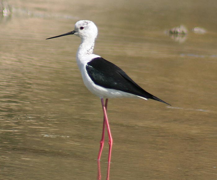 Il Cavaliere d’Italia è una limicolo di medie dimensioni facilmente riconoscibile per la livrea bianca e nera con zampe vivacemente colorate di rosa. L’alimentazione è basata quasi esclusivamente su invertebrati che cattura in acqua o tra i sedimenti del fondo nelle aree umide poco profonde. Nelle Marche è migratrice, presente tra la primavera e l’autunno.